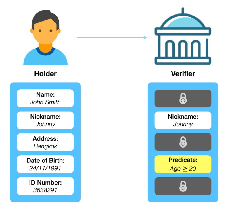 然后你为了上某 X 网站,需要证明你已经年满 18 岁。于是你把身份证信息加密后上传给网站,然后选择只披露其中的姓名和年龄属性。网站通过签名验证这个身份信息确实是由政府颁发的,其中的信息真实可靠,而且证件上的年龄显示你已经年满 18 岁,而证件上的其他信息都对网站不可见。